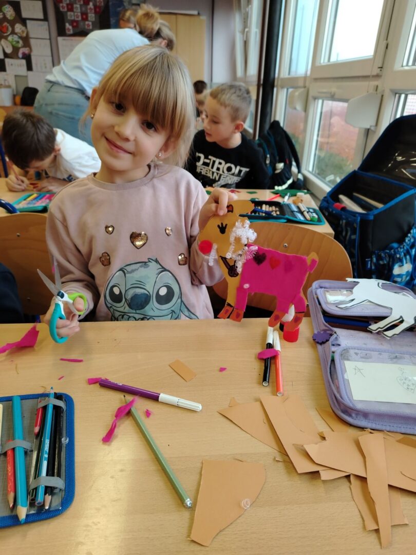 Nakon predavanja učenici su na praktičnoj radionici izrađivali divokoze od papira, filca i vune.