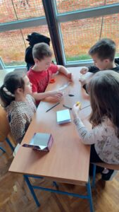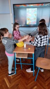 Tijekom veljače 2026. u 3. i 4. razredu odlično smo se zabavljali uz novi dio stripovskoga serijala o Kapi i Bundi slovenskoga umjetničkog dvojca – spisateljice Majde Koren i ilustratora Damijana Stepančiča. „Putovali smo svemirom“ pregledavajući stranicu NASA-e (Nacionalne američke svemirske agencije) i „upoznali“ astronaute koji se trenutno nalaze u Međunarodnoj svemirskoj postaji. No, ipak je najzanimljiviji bio zadatak iznenađenja u režiji knjižničarke Svjetlane: izraditi transportno sredstvo kojim bi lopovski bratski tandem s krova zatvora pobjegao u slobodu. Koliko su naše ekipe bile uspješne, možete provjeriti u ovom filmu. A zajedno vam s knjižničarkom i našim učiteljicama – Katarinom i Brankom – poručujemo da uzmete cijeli serijal u ruke. Nećete pogriješiti jer je zabava zagarantirana! 😀