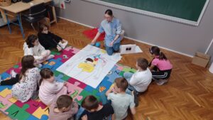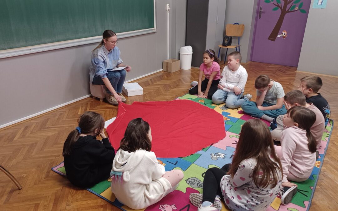 Učenicima je predstavila priču Putovanje Velikom rijekom, kroz koju su na kreativan i djeci blizak način upoznali kako funkcionira ljudsko tijelo. Kroz slikovite opise, razgovor i maštovite aktivnosti učenici su otkrivali ulogu krvi, organa i različitih tjelesnih sustava te shvatili koliko je naše tijelo složeno i čudesno.
